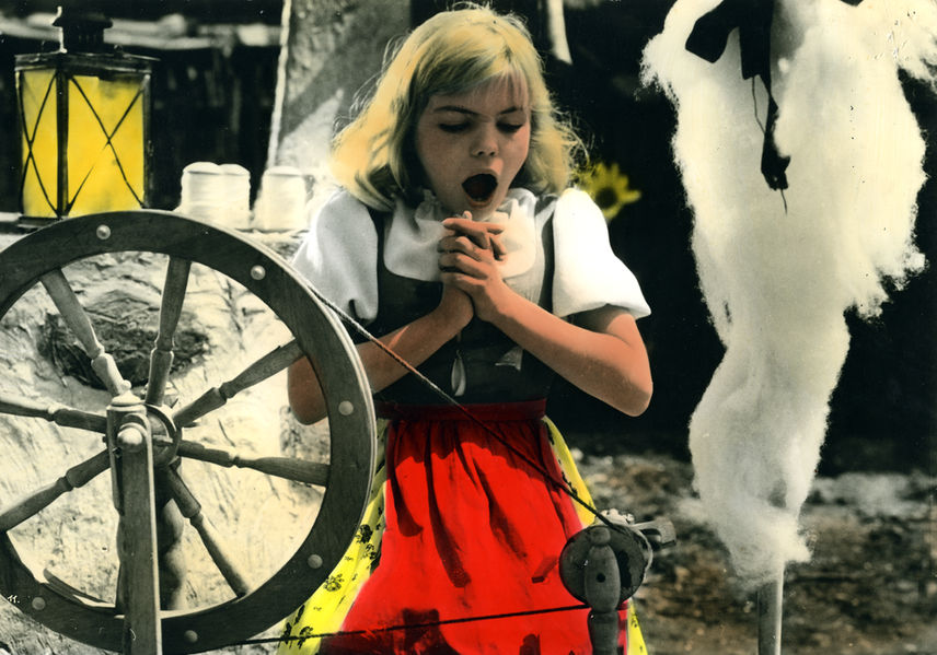 In einem kleinen Dorf lebt die hübsche Goldmarie, die für ihre Stiefmutter und ihre Stiefschwester hart arbeiten muss. Eines Tages fällt Goldmarie beim Spinnen die Spule in den Brunne. Dabei entdeckt das Mädchen den Eingang in das Reich der Frau Holle. Hier schüttelt die hübsche Goldmarie der freundlichen Frau Holle die Betten auf, mit der Wirkung, dass es auf Erden wieder schneit. Für ihre zuvorkommenden Dienste wird Goldmarie hervorragend entlohnt. Als jedoch ihre neidische Stiefschwester davon erfährt, möchte sie ebenso reich werden und dringt in Frau Holles Reich ein – allerdings verläuft ihr Aufenthalt nicht ganz so erfreulich.